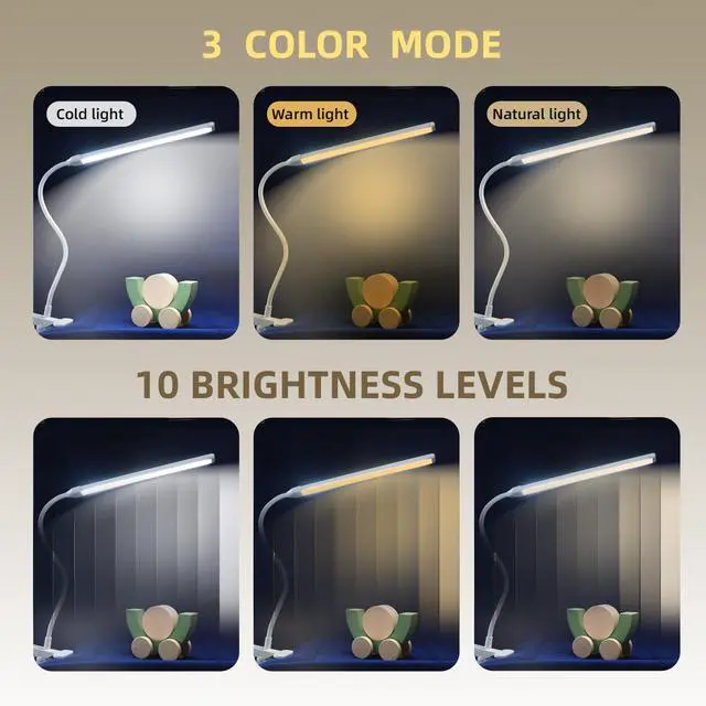 3 LIGHTING MODES & 10 BRIGHTNESS LEVELS- This dimmable reading light with high-quality LEDs offers 3 color modes: warm (3000K), warm and cool (4500K) and cool (6000K). Each lighting mode has 10 brightness dimming levels. Different color temperature and intensity can meet the needs of different scenes.