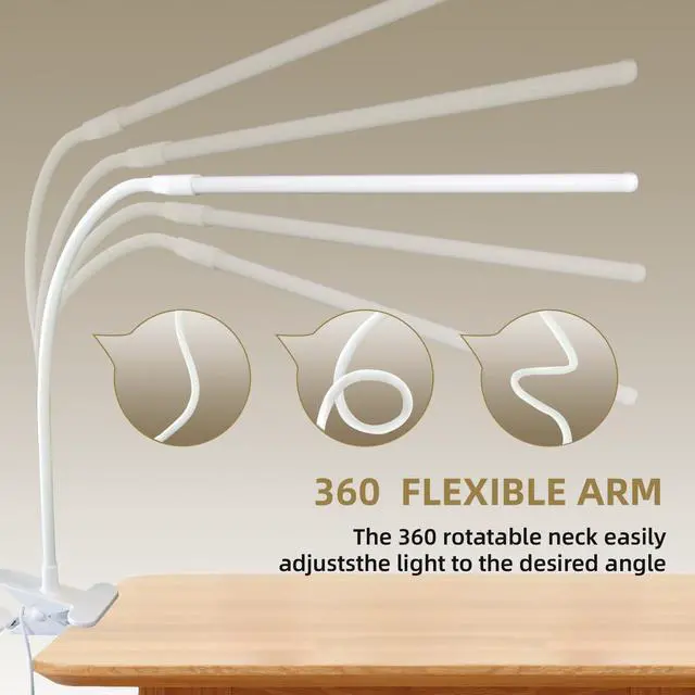 Flexible Arm & Secure Clamp Our desk lamp features a full 17-inch flexible Arm, allowing you to effortlessly position the light exactly where needed for any activity. Focus a bright beam on your canvas for detailed work, or gently direct a soft glow onto your book for late-night reading. The sturdy clamp securely attaches to most easels, desks, and bed headboards.