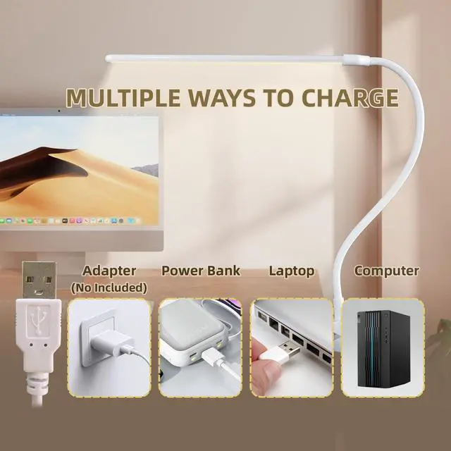 Versatile USB Power & Extra-Long CableEquipped with a universal USB port and a long 6.6ft power cord, this lamp can be powered by a wall outlet, laptop, or power bank for ultimate flexibility in your home studio. (A power adapter is not included).