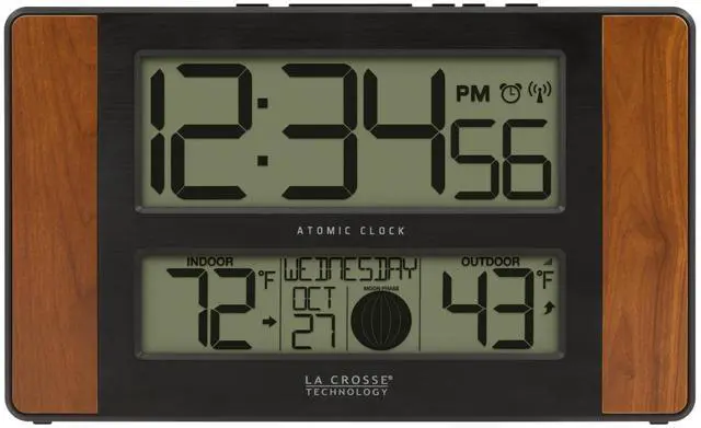 La Crosse Technology 513-1417CH-INT Atomic Digital Clock with Temperature and Moon Phase, Cherry finish