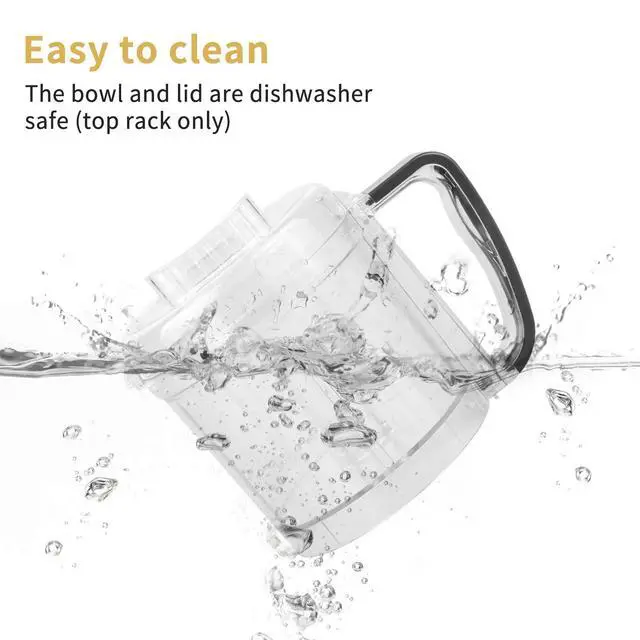 | Q:Is it dishwasher safe? | A:The work bowl and lid are dishwasher safe (Top rack only). |