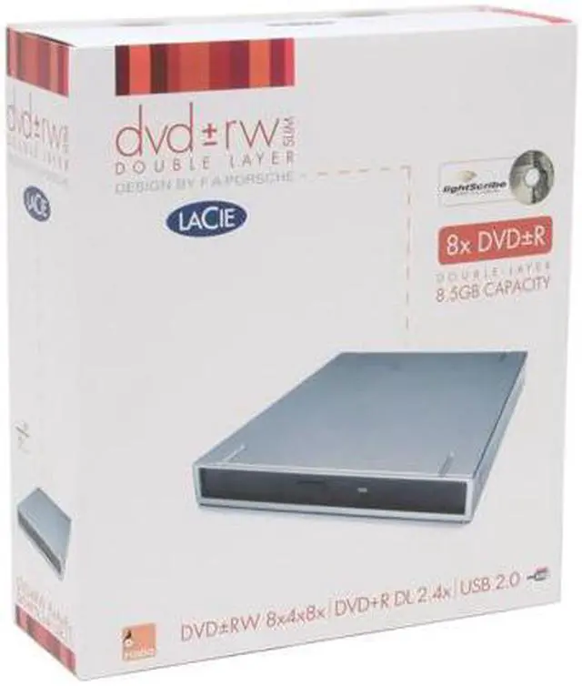 This compact, portable drive is now available with LightScribe - the new, must-have labeling technology that etches precise custom-designed silkscreen-quality DVD/CD labels directly onto your discs. Using the very same laser that etches data onto discs, it's as easy as burn, design, flip, burn.