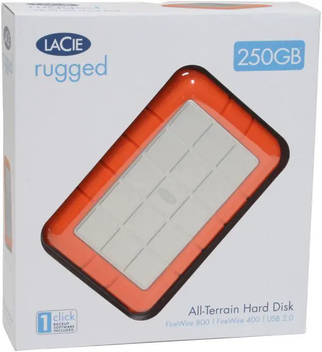 Rugged Protection with Shock ResistanceThe LaCie Rugged All-Terrian hard drive is constructed with a unique scratch-protected aluminum shell and shock-resistant rubber bumper to withstand harsh elements, ideal for people on the go.