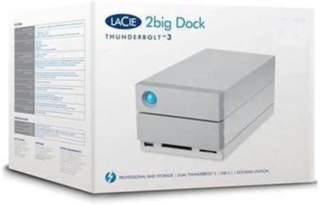 LaCie 2big Dock Thunderbolt 3 20TB - 2 x HDD Supported - 2 x HDD Installed - 20 TB Installed HDD Capacity - Serial ATA/600 Controller - RAID Supported 0, 1, JBOD - 2 x Total Bays - 2 x 3.5" Bay - 2 USB Port(s) - 2 USB 3.0 Port(s) - Desktop