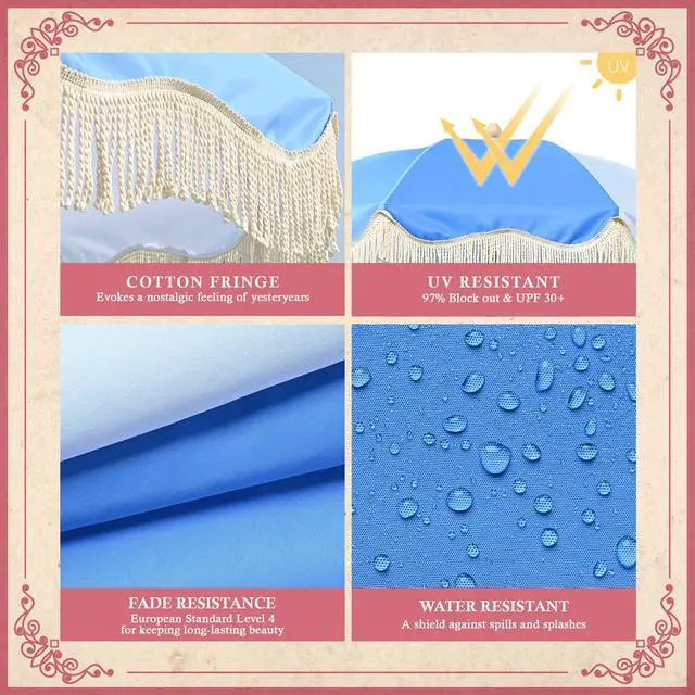 - UV Protection - UV-resistant canopy blocks 97% of harmful sunrays with UV30+ protection, also passes colorfastness test reaching European Standard Level 4 for keeping its long-lasting beauty
