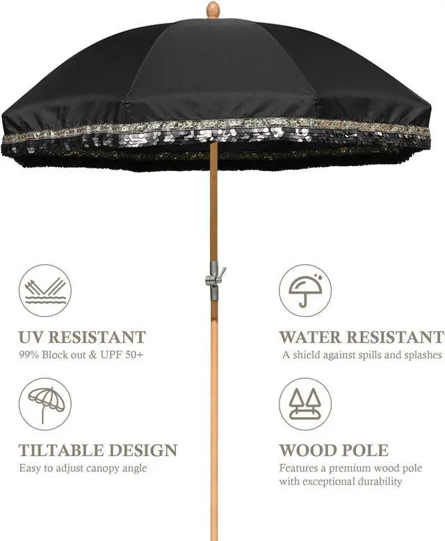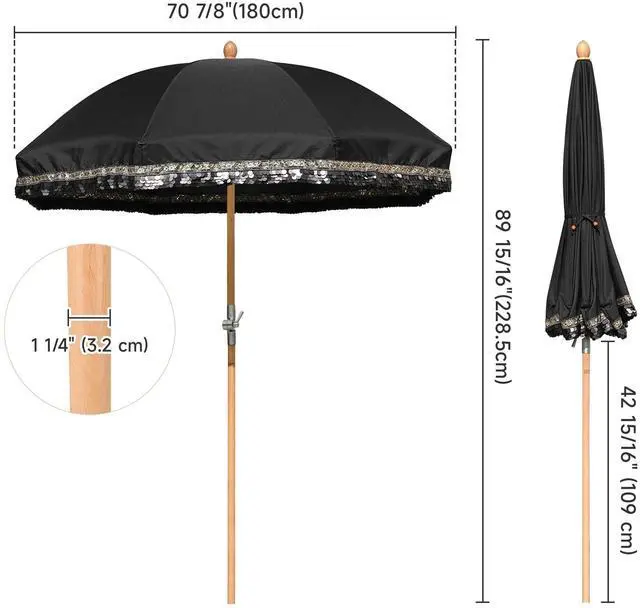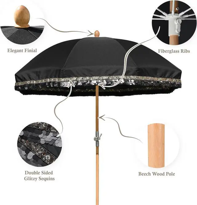 - Sturdy Wood Pole - 1 1/4" dia. beech wood pole with beige wood grain creates a natural and rustic feel, along with fiberglass ribs to ensure strength support and stability. To create your outdoor oasis, simply place the pole in an umbrella base, stand, or table
