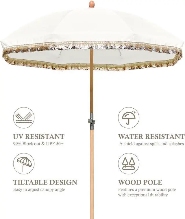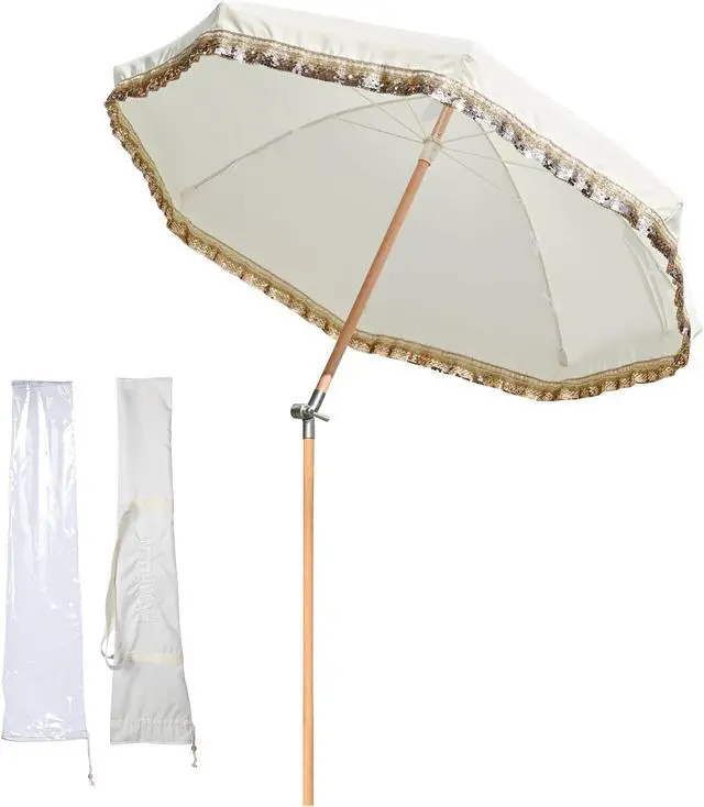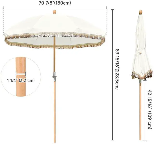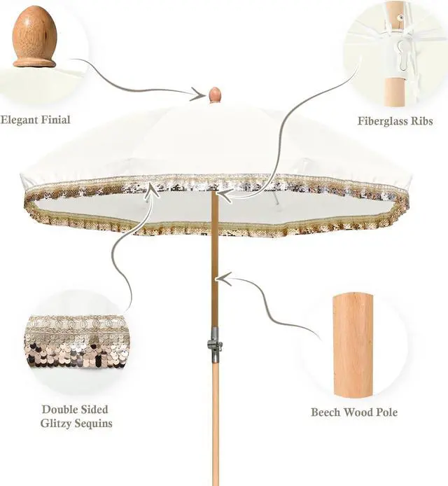 - Sturdy Wood Pole - 1 1/4" dia. beech wood pole with beige wood grain creates a natural and rustic feel, along with fiberglass ribs to ensure strength support and stability. To create your outdoor oasis, simply place the pole in an umbrella base, stand, or table