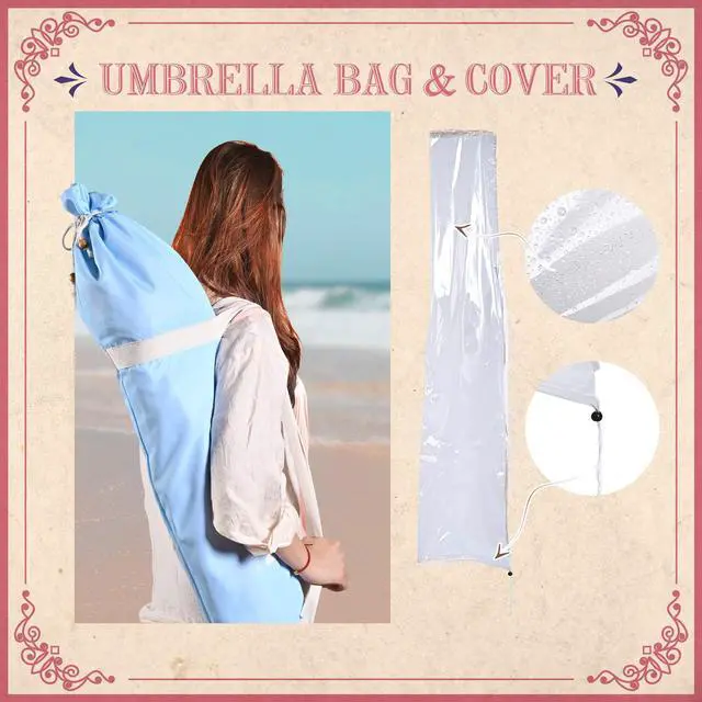- Umbrella Bag & Cover - Includes a carry bag with strap for easy carrying, and a transparent umbrella cover to protect the umbrella when closed in the outdoor from dust or light rain