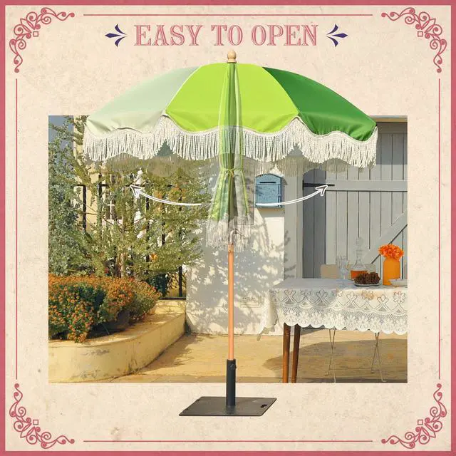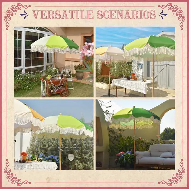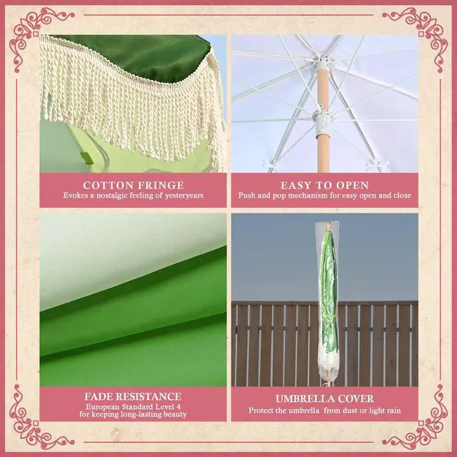 - Palm Springs Umbrella - LAGarden Palm Springs Style Umbrella with nostalgic cotton fringes adds a touch of mint lime to brighten your days, providing not only shade but also a portal to the fabulous 50's; Picture yourself lounging under the umbrella, with a Mojioto in hand or hosting a delightful soiree with your loved ones.Model: PS6-04