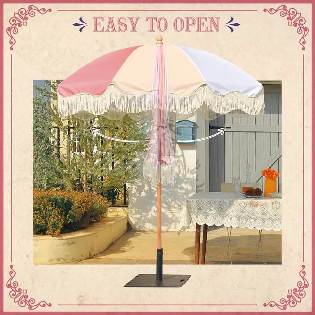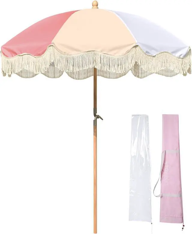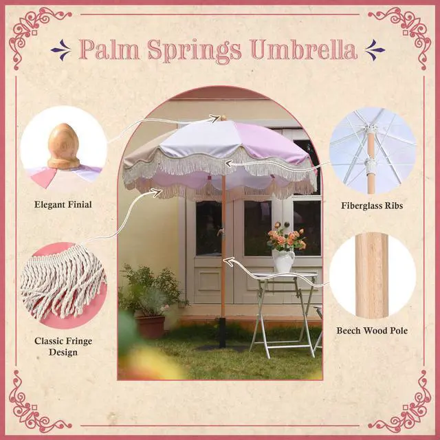 - Palm Springs Umbrella - LAGarden Palm Springs Style Umbrella with nostalgic cotton fringes adds a touch of peachy blush to brighten your days, providing not only shade but also a portal to the fabulous 50's; Picture yourself lounging under the umbrella, with a Cosmo in hand or hosting a delightful soiree with your loved ones.Model: PS6-12