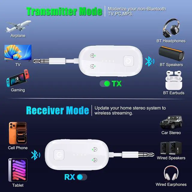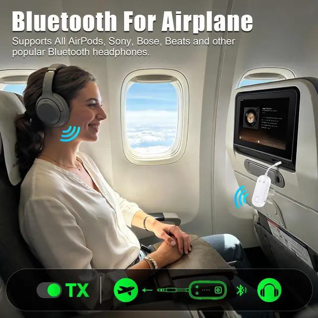 Sound Unbound: Your All-in-One Wireless Audio Travel Companion Elevate every trip with the ultimate travel essential a compact 2-in-1 bluetooth transmitter receiver that liberates your audio wherever you go. Designed as the perfect airplane bluetooth adapter, it transforms in-flight entertainment into a personal cinematic experience, making it a top plane travel essential and a thoughtful travel gift. At home, it effortlessly doubles as a bluetooth transmitter for TV, wirelessly streaming high-quality audio to your headphones. As a versatile bluetooth adapter, it breathes new life into car stereos and wired speakers when used in receiver mode. Its included dual-prong airplane headphone adapter ensures compatibility with any airline seat. More than just another airplane gadget, this wireless bluetooth airplane adapter is engineered for simplicity with one-button controls and clear indicators. A true travel must-have, its your reliable bluetooth to aux adapter for gyms, road trips, and daily commutes. From airplane travel essentials to travel accessories that matter, this device delivers seamless bluetooth audio transmission without compromise. Wireless freedom, perfectly portable.