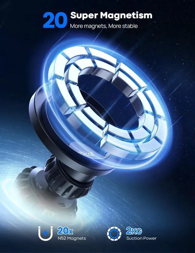 20 Upgraded Magnets: 2026 Upgraded Magnet Layout - 38.7% Power Boost! Lamicall car phone holder for Magsafe built-in 20 upgraded N52 super magnets, which can easily hold items up to 4.4 lbs. Super powerful magnets ensure a firm hold on your cell phones. Never afraid of falling off even braking strongly, taking sharp turns or driving on rough roads. A practical for MagSafe accessory, car accessory. Note: Hook extension range 9 mm-28 mm. The thickness of the vent blade is less than 4mm. Not suitable for Round Vent.