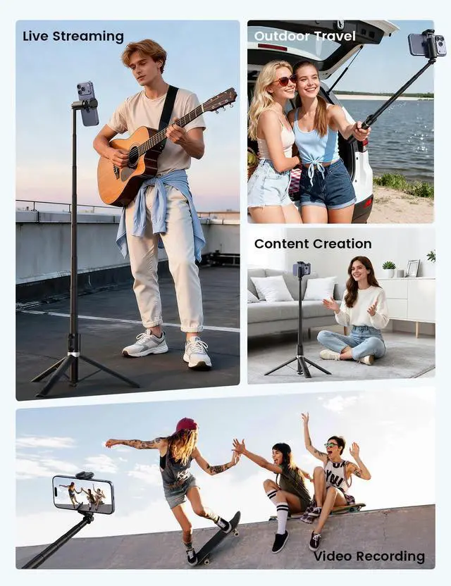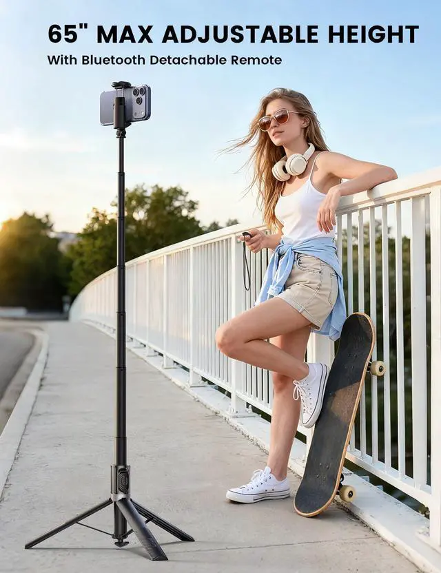 Compact and Portable: The selfie stick for iphone ensures lightweight portability with telescopic design, extending to 65 inches fully yet collapsing to just 14.17 inches and weighing a mere 351 grams. It captures high-angle videos and photos while easily fitting into backpacks or handbagCompact for life on the movewhether you're backpacking, hiking, or catching a flight. Ideal for travelers who prioritize lightweight gear.