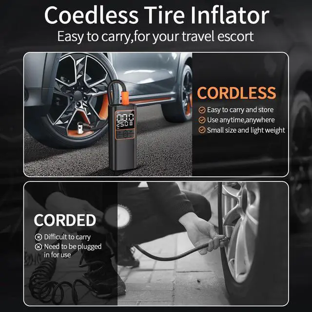 Cordless Tire Inflator Portable Air Compressor for Car Tire.