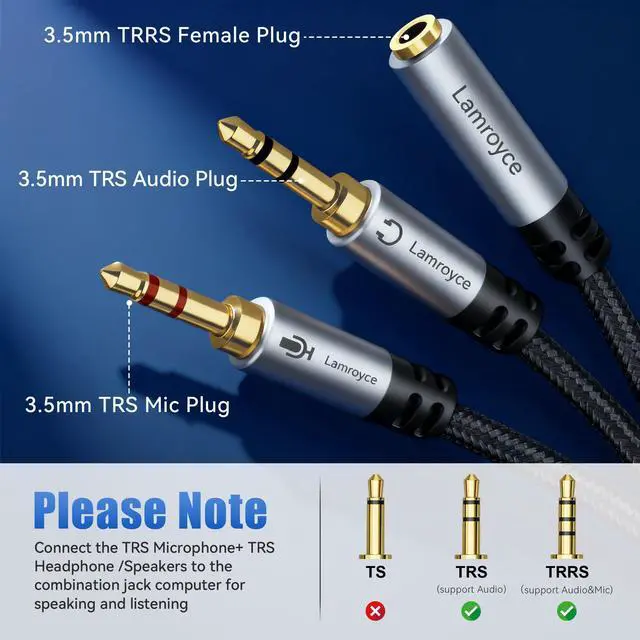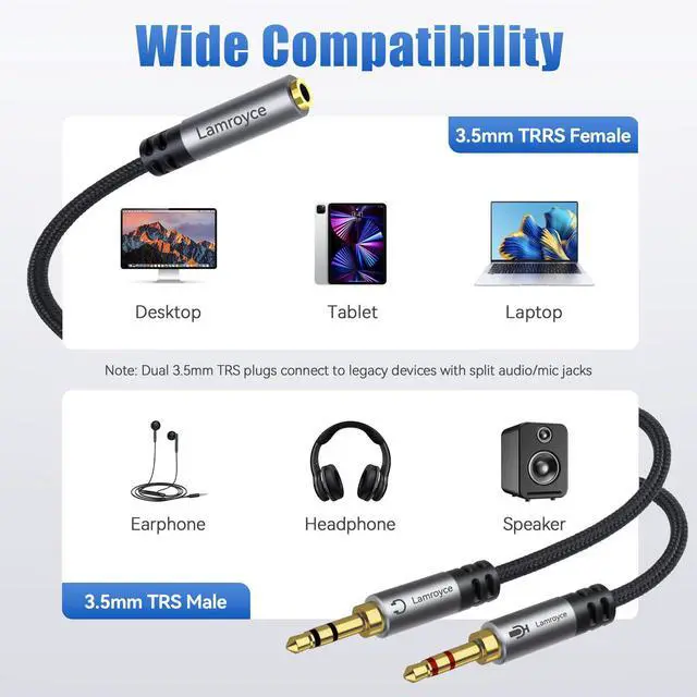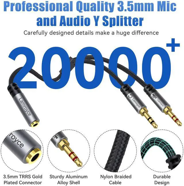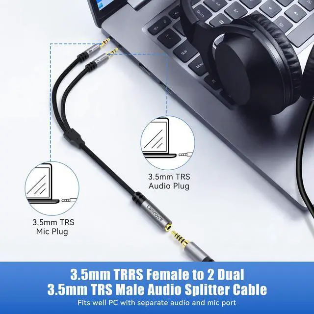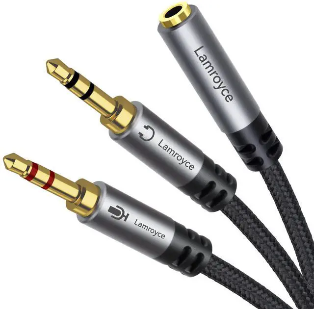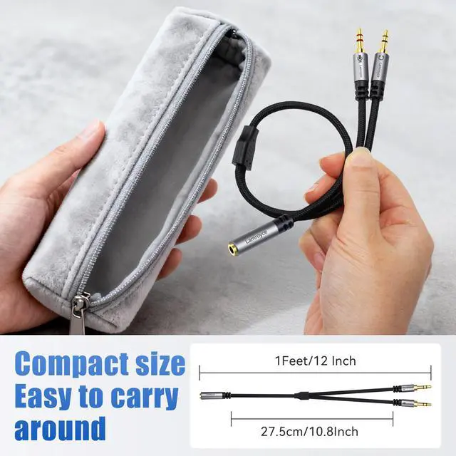 Headphone Splitter for Computer,3.5mm TRRS Female to 2 Dual 3.5mm TRS Male Mic Audio Jack Y Splitter Cable, 1/8inch 2-in-1 Dual-Stereo Jack Gaming Headset Earphones Combiner Cable for PC Laptop-1Feet