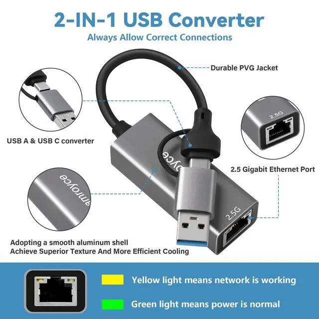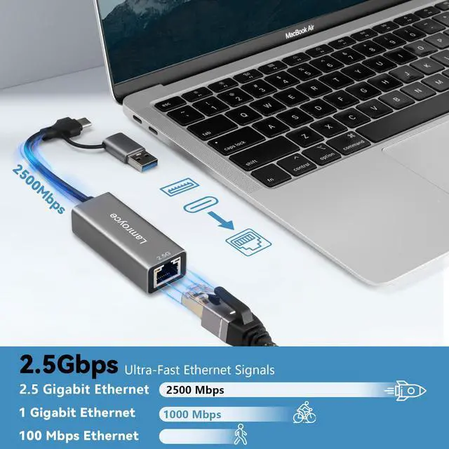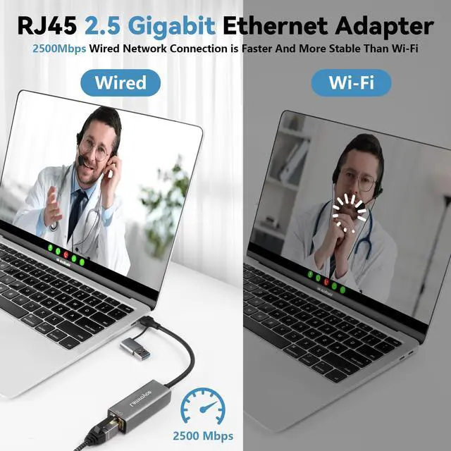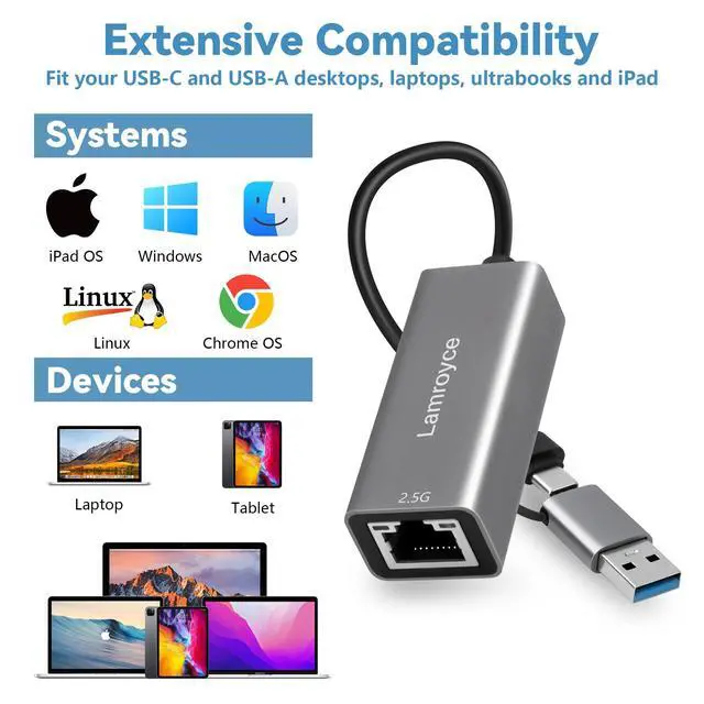 USB 3.0 to Ethernet Adapter 2.5G, USB C 3.1 to RJ45 2.5Gigabit LAN (2500Mbps) Network Internet Adapter Converter, Support 2.5G/1000/100/10Mbps, Plug and Play,for Laptop, MacBook, Windows, MacOS,Linux