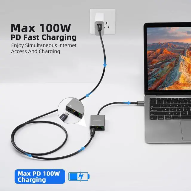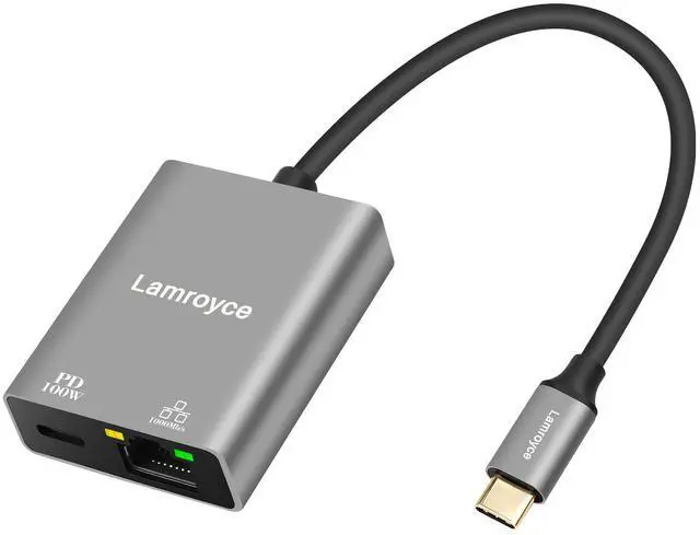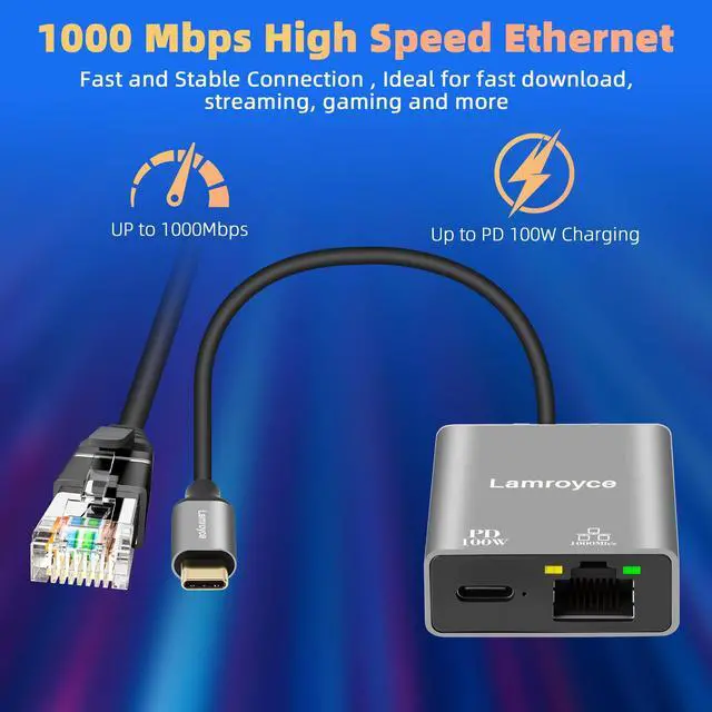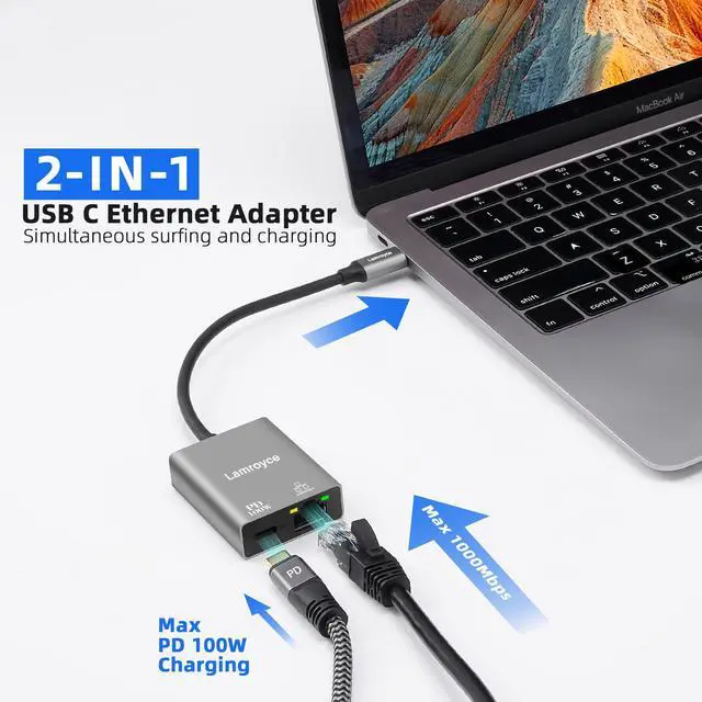 USB-C to Ethernet Gigabit Adapter with 100W Power Delivery, USB 3.1 Type-C to RJ45 1000Mbps Ethernet LAN Network Dongle Adapter, Charging and Surfing 2 in 1 for PC, Laptop, Tablet, Smartphone