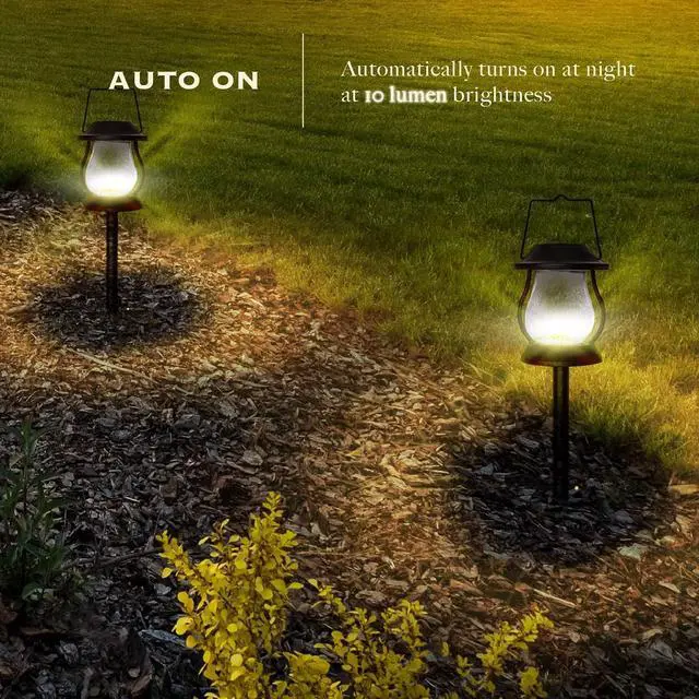 Illuminate your outdoor space with the Landia Home Solar Pathway Lantern. This versatile product can be used as a path light or a hanging lantern, depending on your preference. The Landia Home Solar Pathway Lantern is easy to install and eco-friendly, as it uses solar energy to charge its battery. The lantern has a warm white LED light that creates a cozy ambiance at night. The lantern also has a durable metal frame and a glass shade that adds elegance and style to your garden, patio, or porch. The Landia Home Solar Pathway Lantern comes in a 2-pack, so you can create a beautiful lighting arrangement for your home.