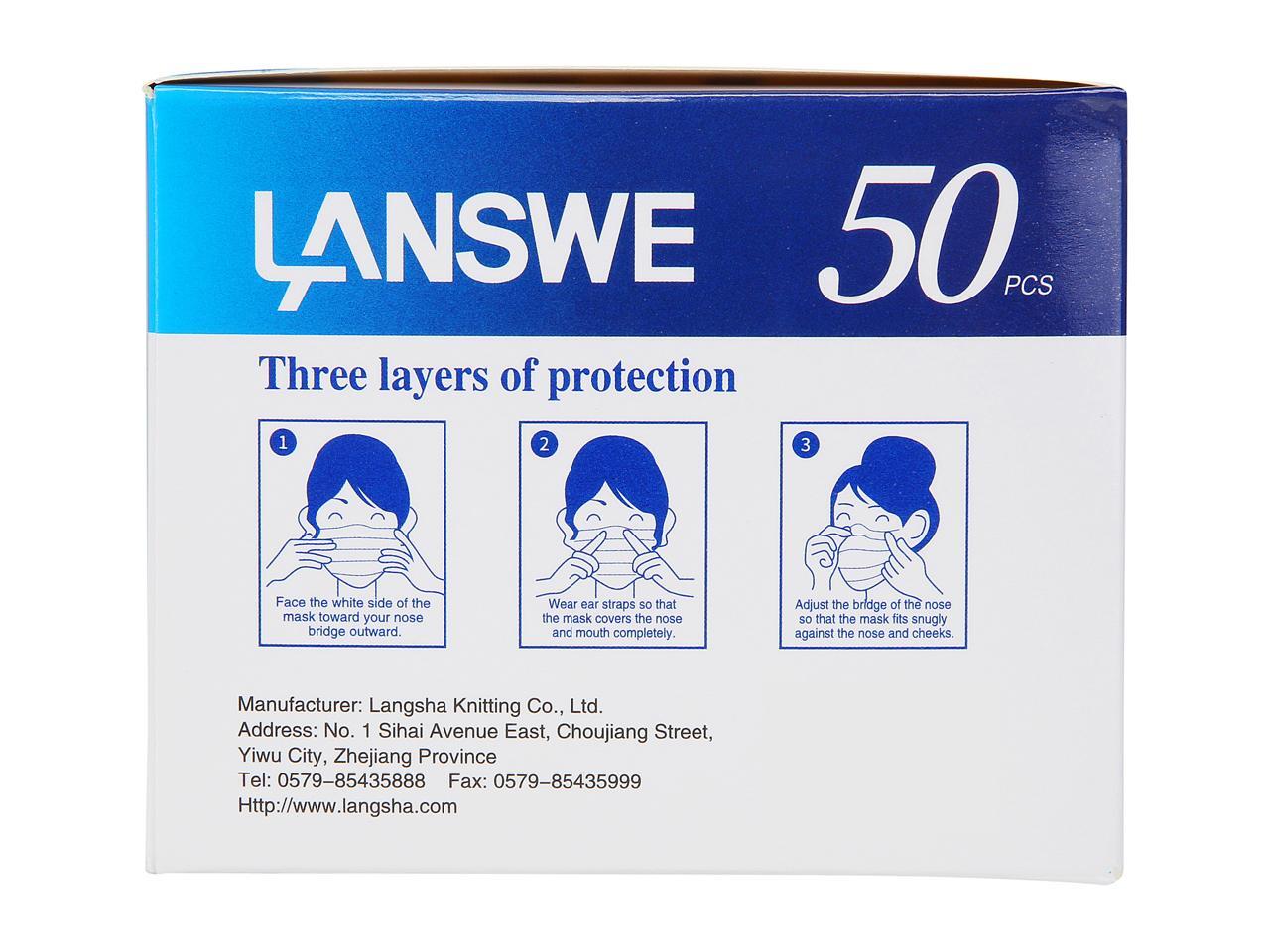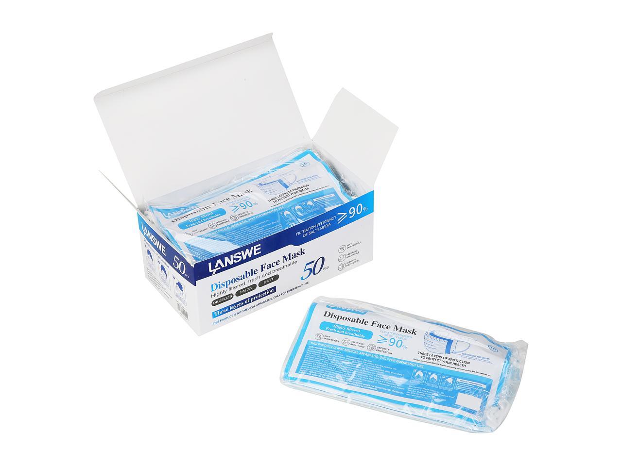 LANSWE Disposable Face Mask - 10 pcs per Pack and 50 pcs per Box