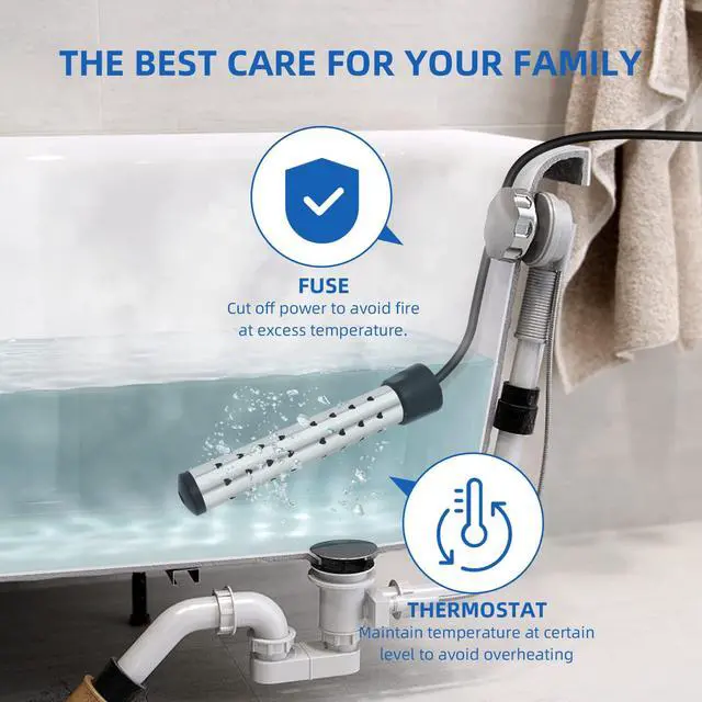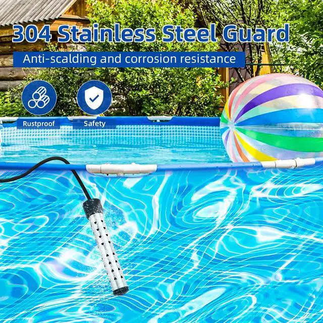 • Safe & Durable Stainless Steel Design Features a rust-resistant 304 stainless steel guard and overheat protection that auto-shuts off at 167°F. The thermostat cycles on/off to maintain water temperature automatically.