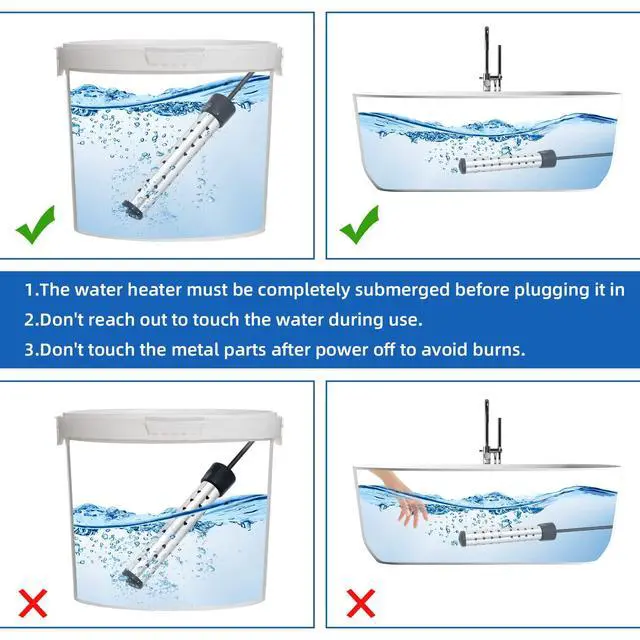 • Safety First with 1-Year Warranty Backed by a 1-year warranty. Must be fully immersed during useremove before touching water! Avoid over 3 hours continuous use or same-outlet pairing.