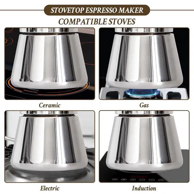 Versatile and Easy to UseWhether you're a seasoned coffee connoisseur or a casual drinker, our espresso maker is incredibly user-friendly. Compatible with gas, electric, and induction stovetops, it offers unparalleled versatility. The easy-to-clean design ensures hassle-free maintenance.