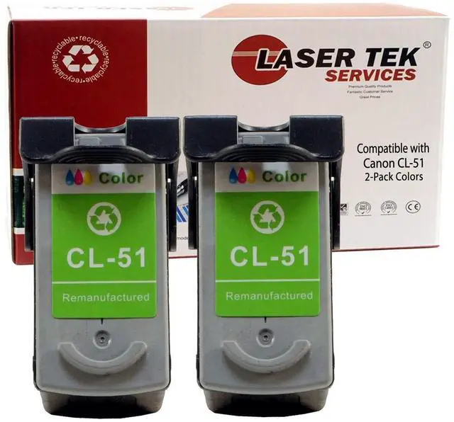 Laser Tek Services Compatible Ink Cartridge Replacement for High Yield Canon CL-51, 0618B002, Canon 51 Color, CL51, 0618B002AA. (Color, 2-Pack)