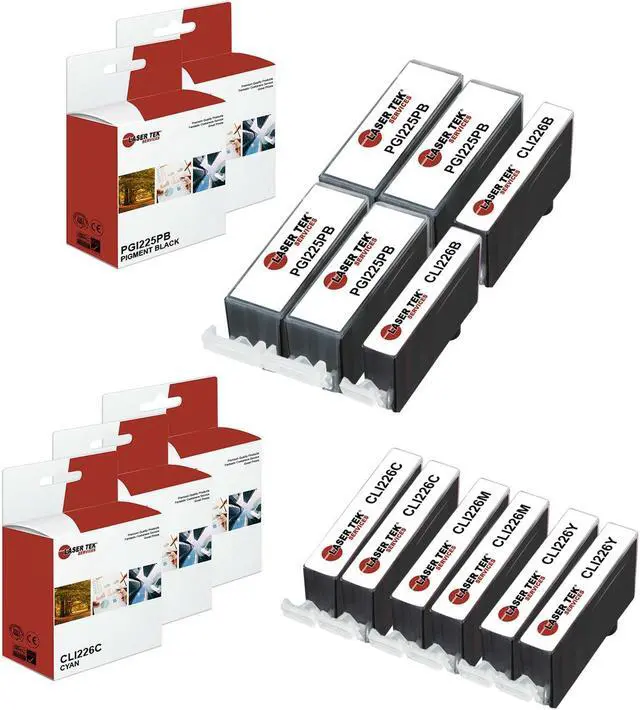 Laser Tek Services Compatible High Yield Ink Cartridge Replacement for Canon PGI-225 CLI-226 Works with Canon PIXMA iP4820 iP4920 MG5120 Printers (Pigment Black, Black, Cyan, Magenta, Yellow, 12 Pack)