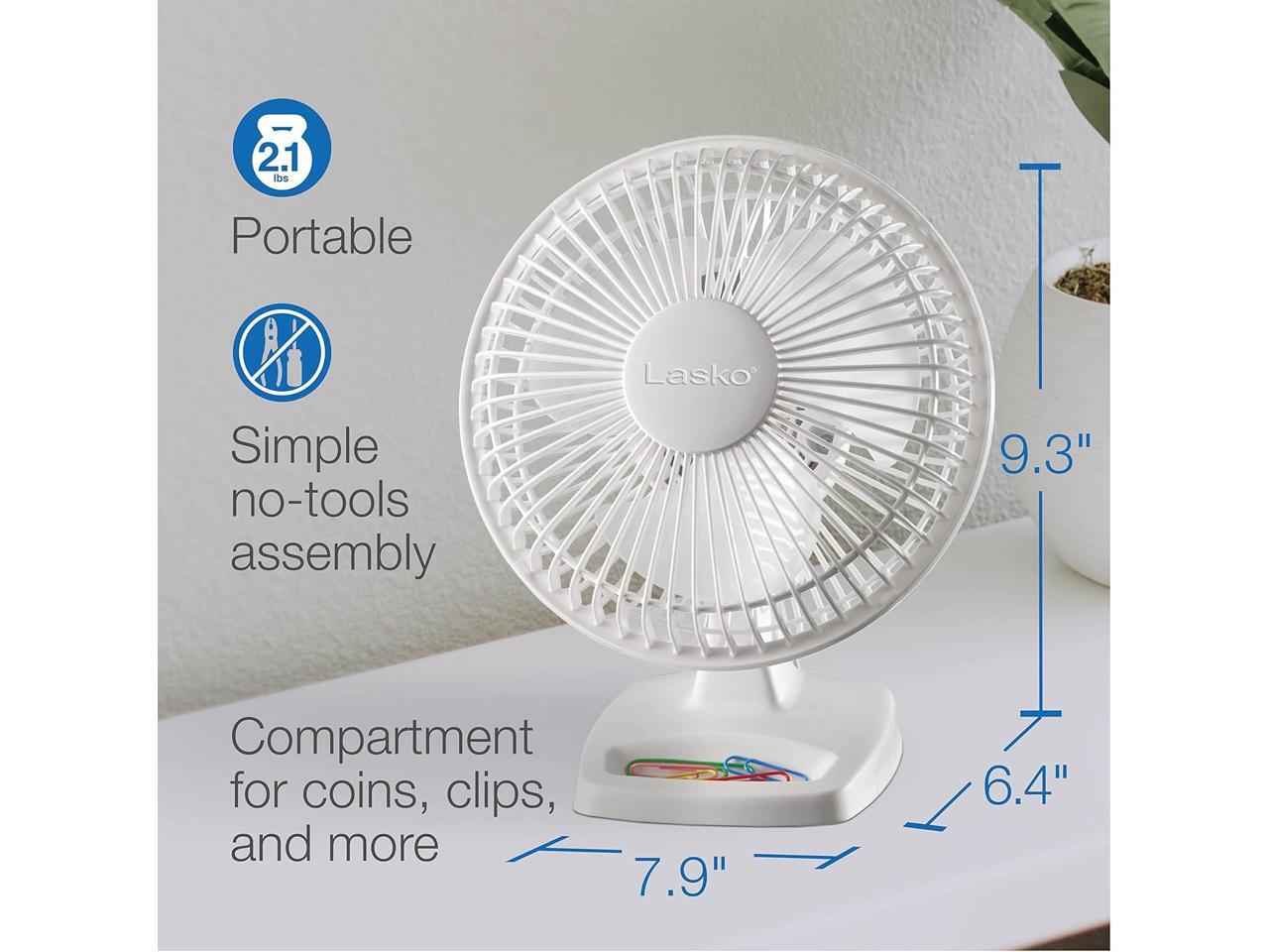 Lasko 6" 2-Speed Personal Table Fan with Storage Tray, 2002W, White