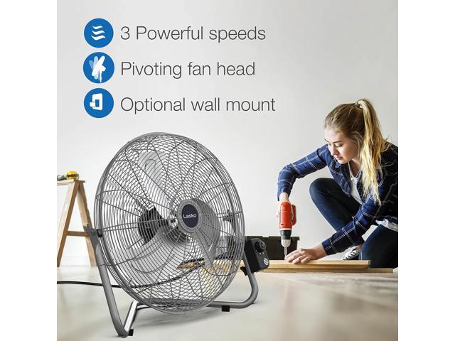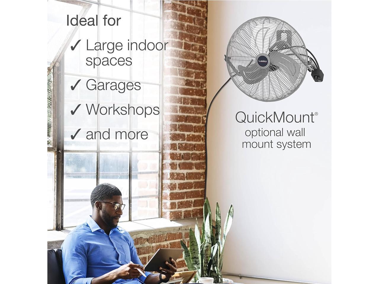 Lasko 20" Silver High Velocity Wall Mount Fan with Pivoting Head - 3 Speeds, Ideal Wall Mount Fan or Floor Fan for Home, Garage, Attic, 2265QM