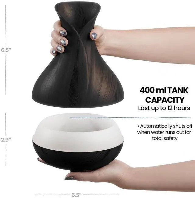 Our smart diffuser is also Alexa and Google Home compatible and can be used with echo/tap/dot to control simply by using your voice. A large 400ml water tank allows for up to 12 hours of continuous mist.