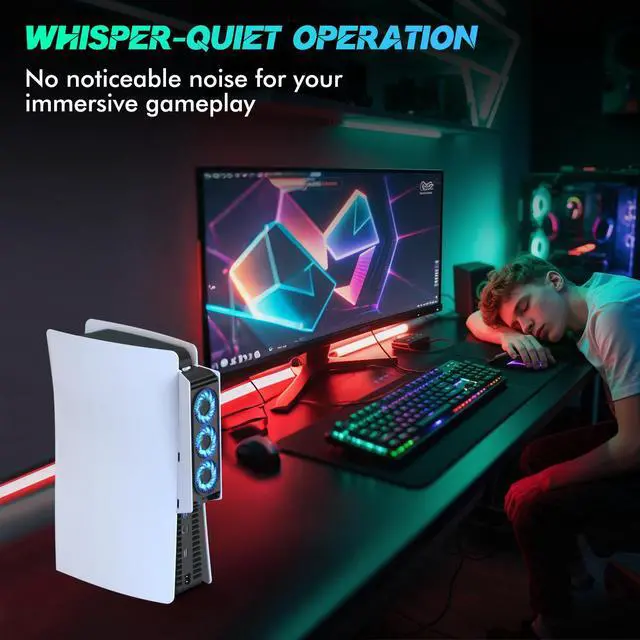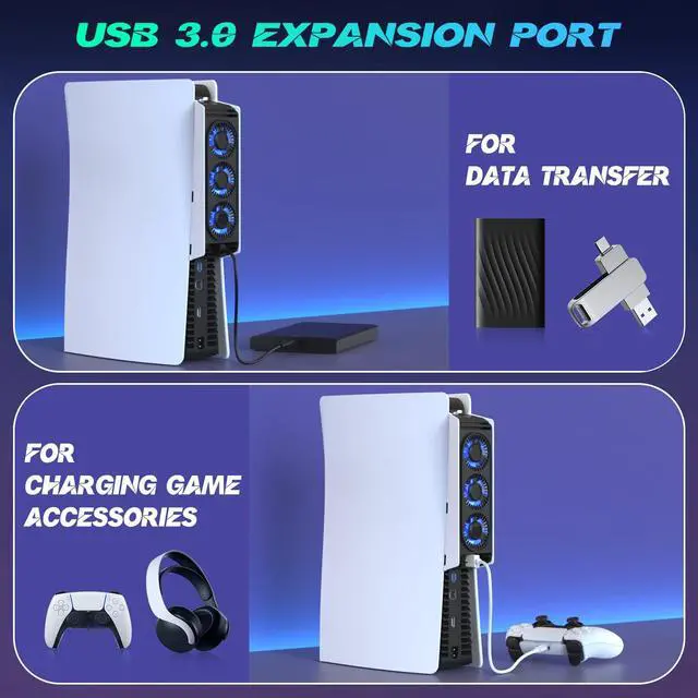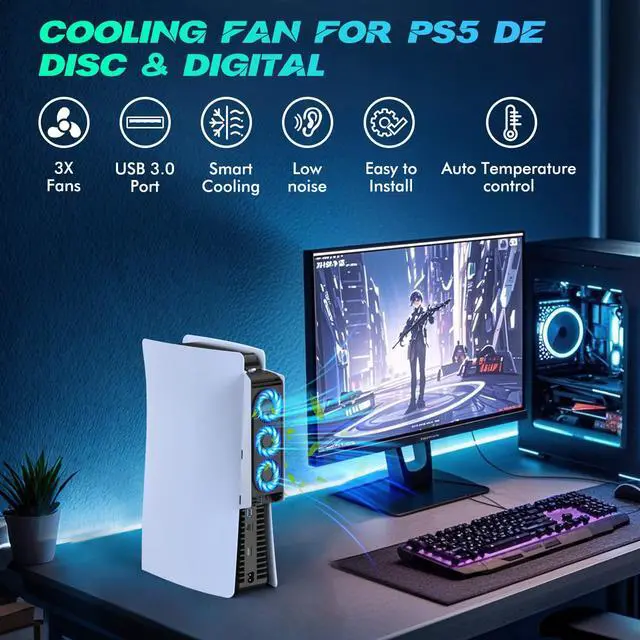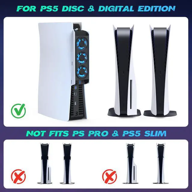 Precise Fit for PlayStation 5 Console (Disc & Digital Editions) Designed exclusively for the 2020 PS5 console, this upgraded cooling fan for PS5 ensures a perfect fit without blocking HDMI or LAN ports. Tool-free installation plug and play through the rear USB 3.0 port. (Not compatible with PS5 Slim or Pro.)