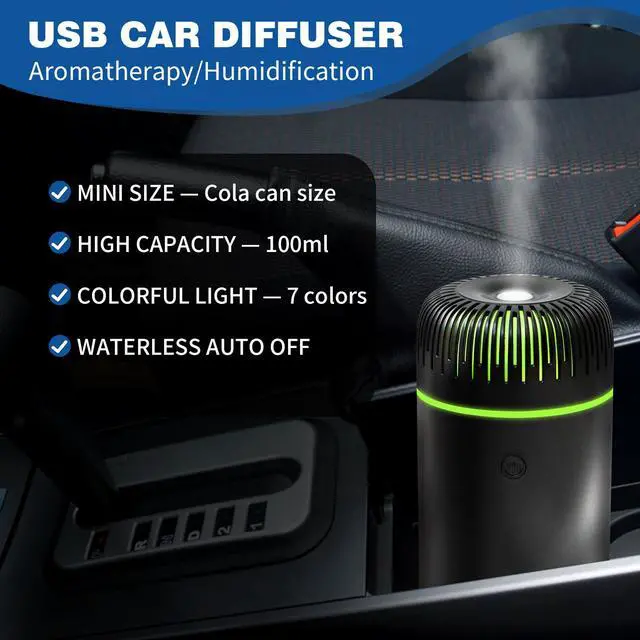 The car diffusers for essential oils has 7 LED light changing, creating a peaceful and cozy atmosphere when you're driving or sleeping.