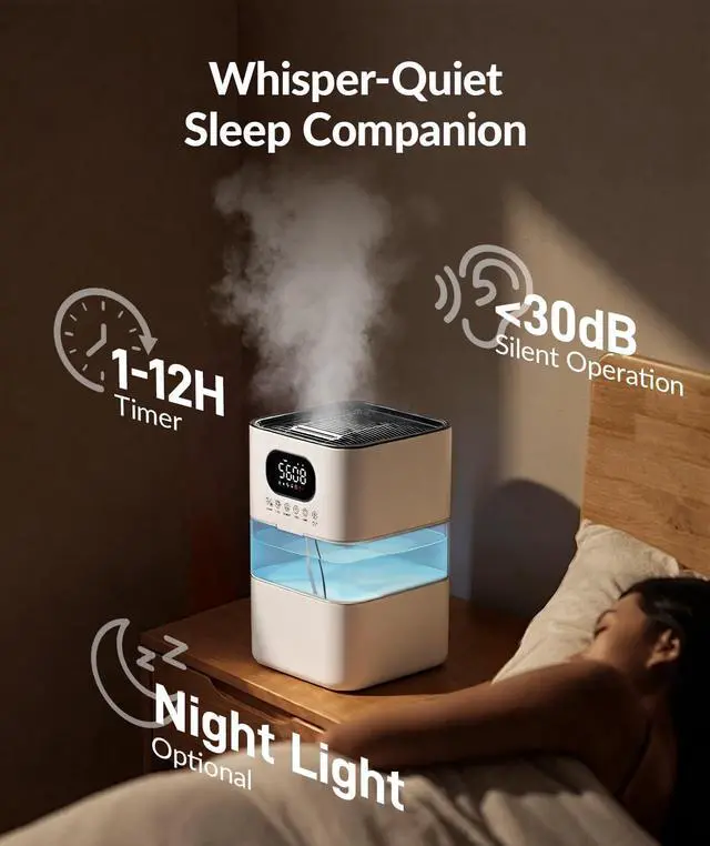 Quiet Nighttime Operation: At only 30dB in sleep mode, it runs whisper-quiet with the display off. The optional, soft-glow RGB night light creates a soothing atmospherea perfect sleep companion for restful nights.