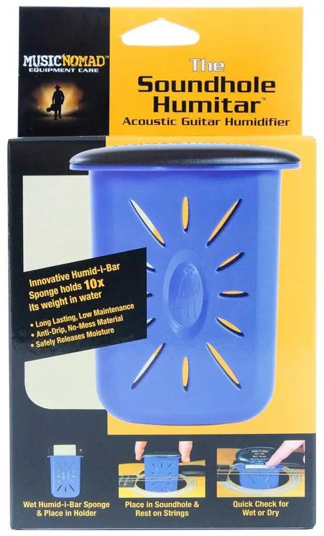 The Humitar safely releases moisture evenly to eliminate potential problems such as warping, shrinking and, worse yet, cracking. MusicNomad, the leader in equipment care, has developed an easy to use, no mess, low maintenance guitar humidifier.