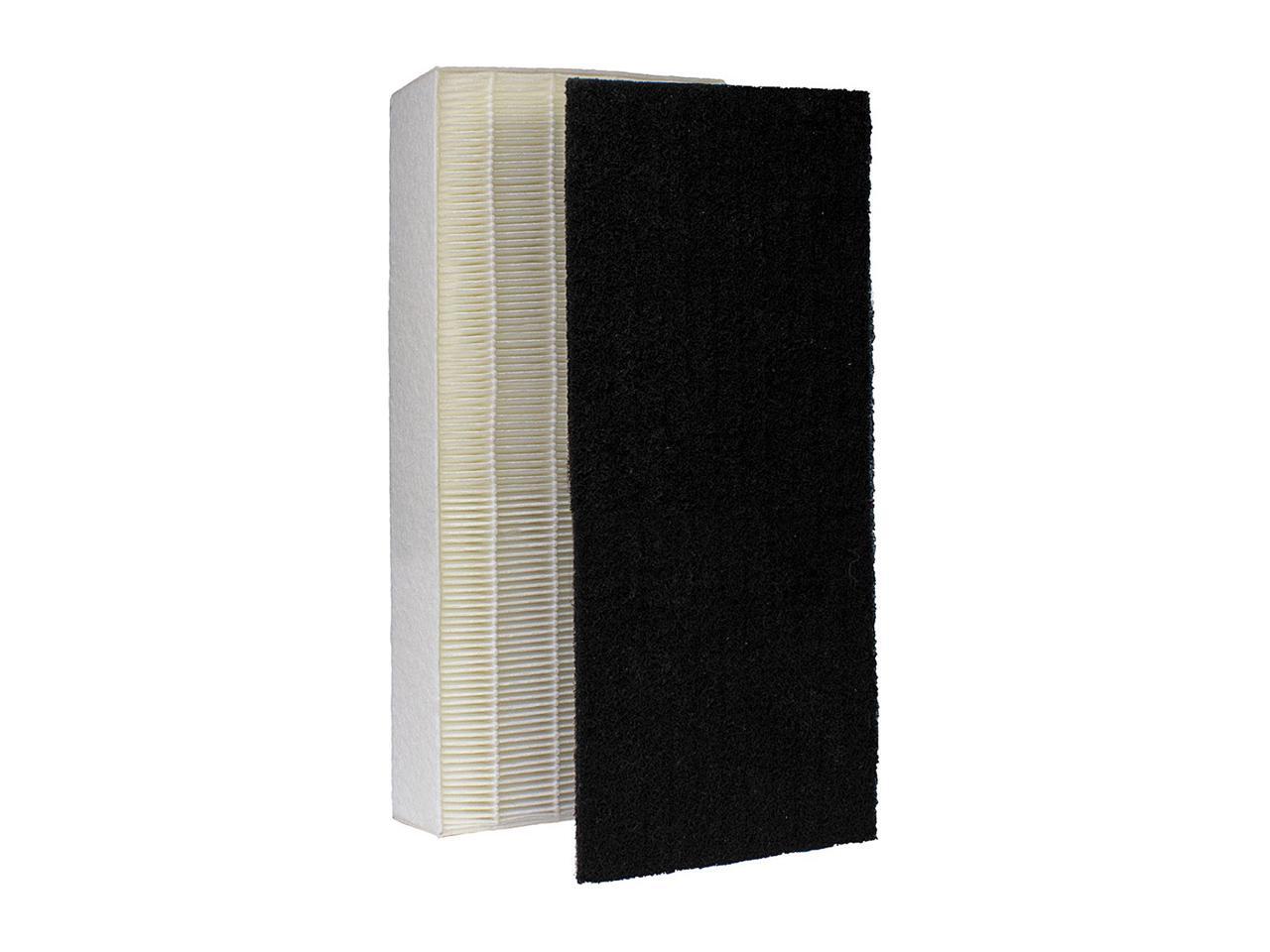 - TOTAL PROTECT FILTRATION: 2-Stage Filtration process protects your home from 99.7% of airborne irritants. The Activated Carbon filter removes smoke, cooking, pet and other household odors. HEPA filter captures 99.97% of airborne irritants such as virus sized particles, mold, pet dander, pollen, dust mites and other allergens down to 0.3 microns*. * Tested with Staph Epidermidisa, Escherichia Coli, Aspergillus Niger, and MS-2