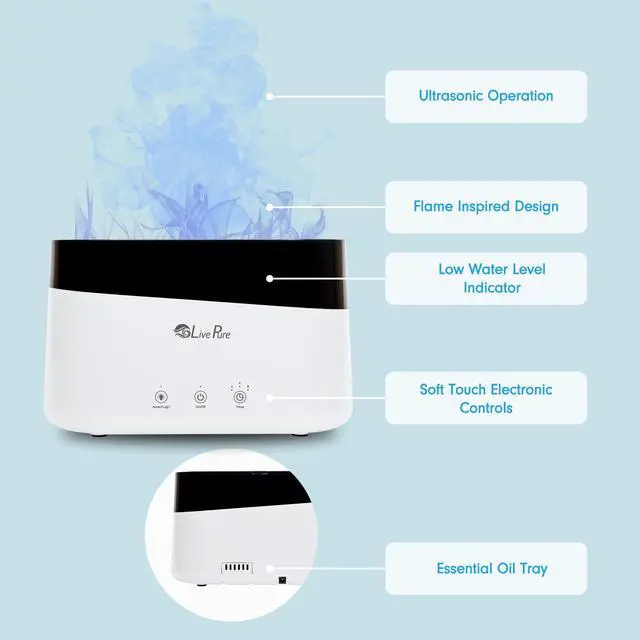 Transform your space into a sanctuary of calm with the LivePure Aqua Flame Cool Mist Humidifier. This sleek small humidifier delivers soothing moisture to dry indoor air while creating a tranquil atmosphere with its soft, flame-like glow. Ideal for home offices, bedrooms, and living areas, its a must-have for your apartment essentials, dorm essentials, and overall home essentials. Designed with ultrasonic technology, this plant humidifier indoor helps maintain optimal humidity levels for both personal comfort and healthy houseplants. Add a few drops of your favorite essential oils to enjoy a relaxing aromatherapy experience while you work, sleep, or unwind. With its modern tabletop design and whisper-quiet operation, the Aqua Flame is perfect for enhancing any roombringing together wellness, style, and functionality in one elegant device.