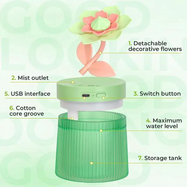 | Included Components | water tank, humidifier base with control button and night light, cotton core |