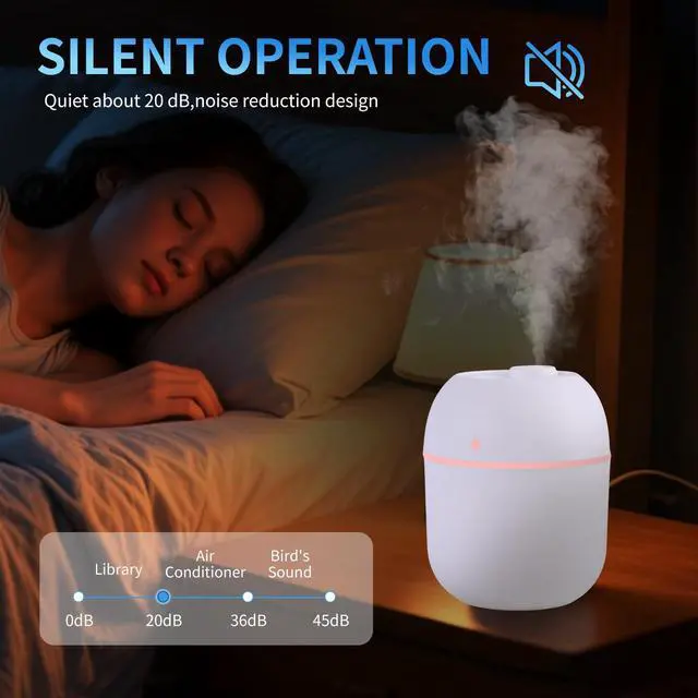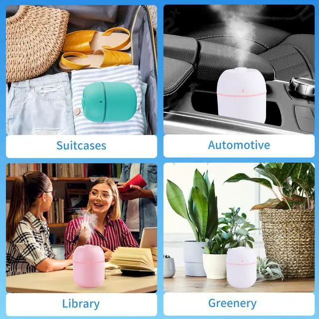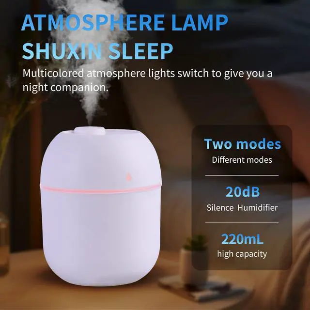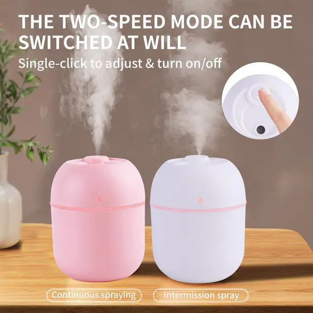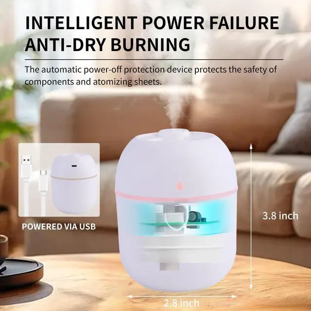 Humidifier Convenient Small Humidifier USB Charging is Applicable to Cars, Offices, Bedrooms, Cold Fog Air Humidifier with Color Night Lights, Two Ultra Quiet Spray Modes and Automatic Shutdown Function