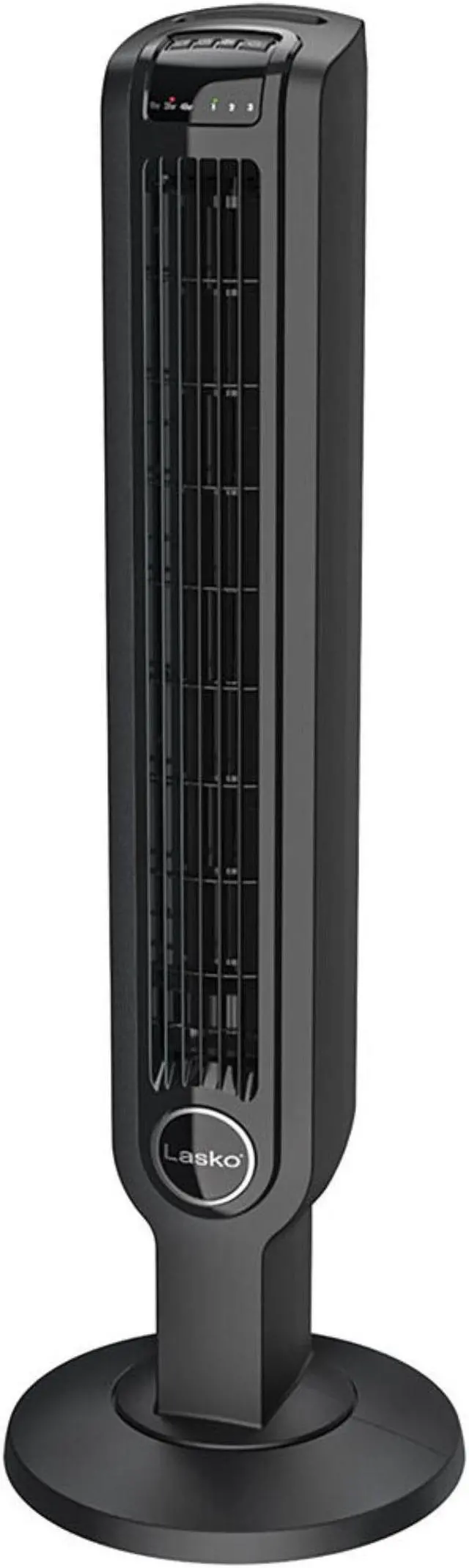 | Feature | This 36" Oscillating Tower Fan from Lasko features a slender design that is a great fit for any room in the home - especially when space is at a premium. Bring cooling airflow into your room with 3 quiet fan speeds and widespread oscillation. Includes an auto-off timer function so you can set your fan to run for up to 7 hours, then turn off to conserve energy. Electronic touch control operation, plus a multi-function remote control make using this attractive tower fan a breeze. Comes equipped with the Lasko Blue Plug, patented safety fuse technology. Simple assembly required. 3 quiet speeds Simple assembly required E.T.L. listed Electronic controls Widespread oscillation |