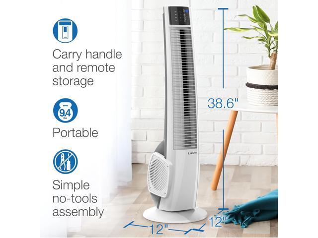 Lasko Oscillating Tower Fan with Remote Control - Tower Fan for Bedroom & Office, 4 Quiet Speeds, 38" White, T38400