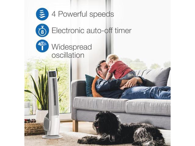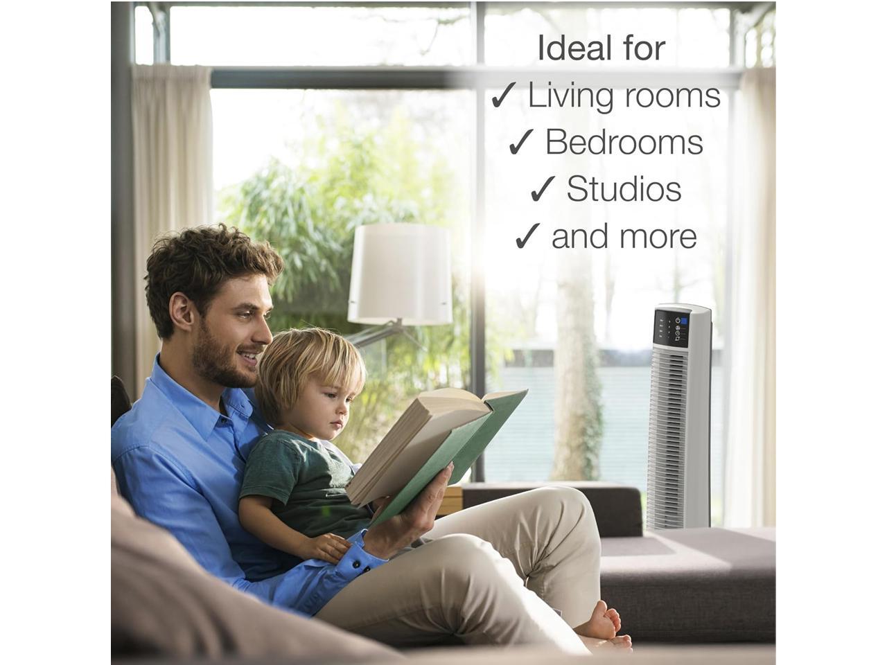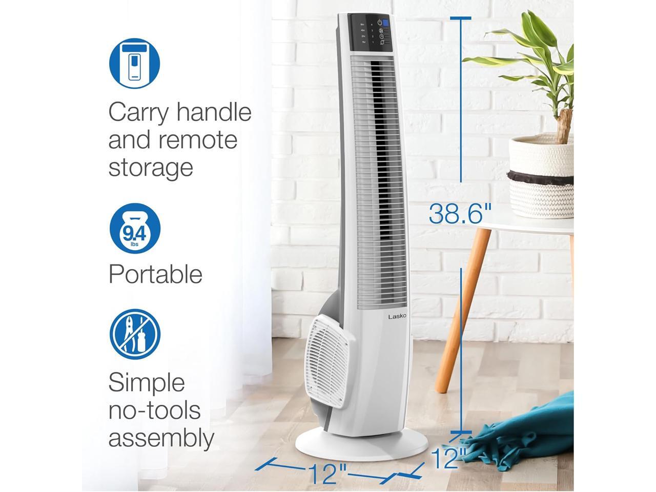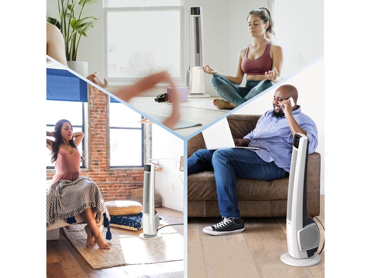 - Features a space-saving tower fan design that is ideal for home or office use