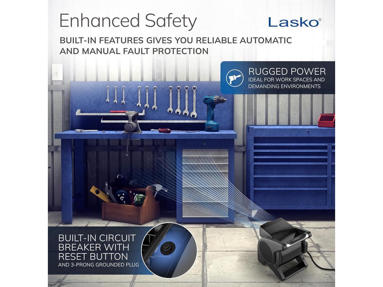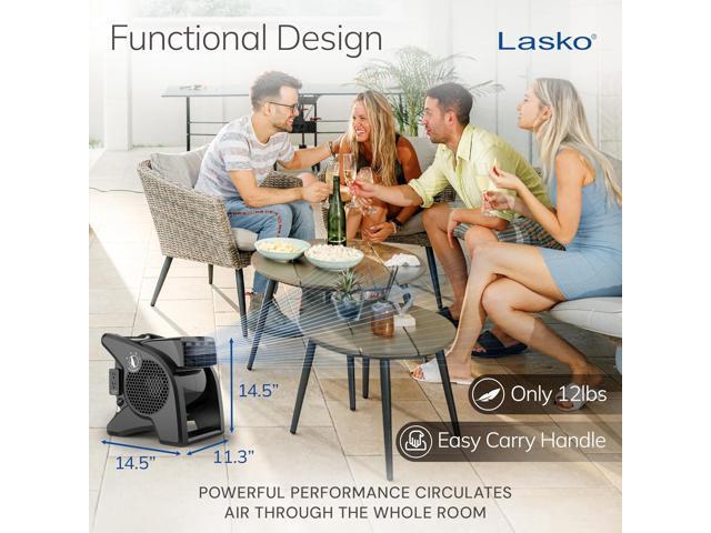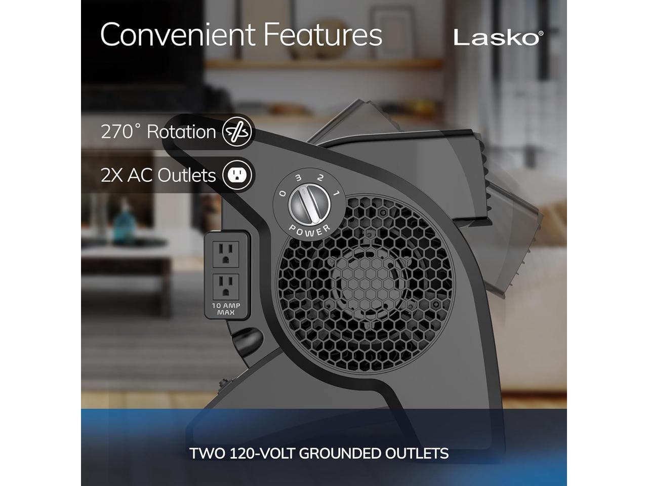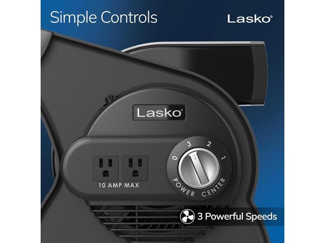 Lasko High Velocity Fan, 15", 375 CFM, Professional Utility Pivoting Blower Fan with 3 Speeds, 2 Accessory Outlets, 120V, Black, Model U15617