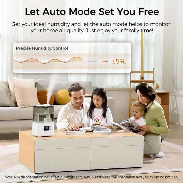 Our 4.5L model runs up to 45 hours on low cool mist — nearly two full days. Even warm mist lasts all night. Covers 600 sq. ft. for bedrooms, nurseries, large rooms. Auto shut-off when low. Just set it and forget it.