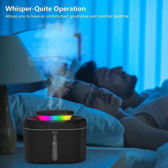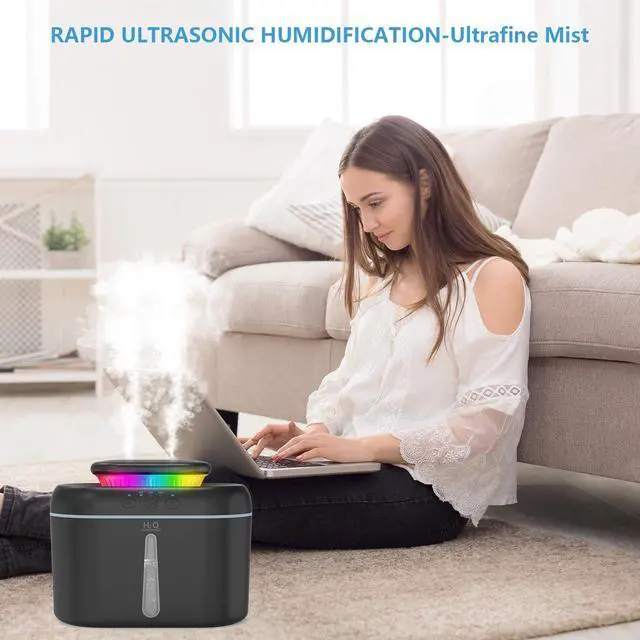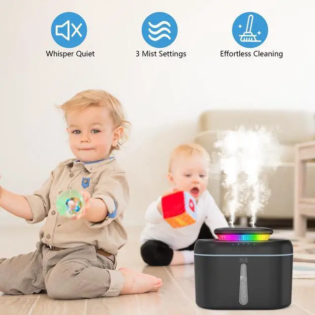 Humidifiers for Bedroom, 2.5L Capacity, Auto Shut-Off, Easy to Fill & Clean, 16 dB Quiet Ultrasonic Humidifier for Large Room, Plants, Baby Nursery, Indoor, Night Light (Black)