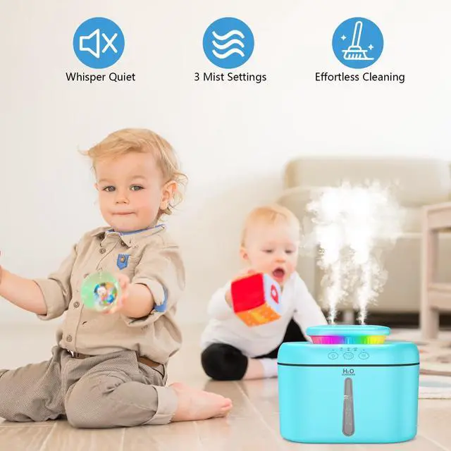Humidifiers for Bedroom, 2.5L Capacity, Auto Shut-Off, Easy to Fill & Clean, 16 dB Quiet Ultrasonic Humidifier for Large Room, Plants, Baby Nursery, Indoor, Night Light(Blue)