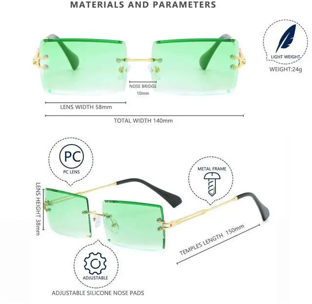 About 2.4 INCH, the Rimless Rectangular Sunglasses are comfortable to wear and will not slip off.