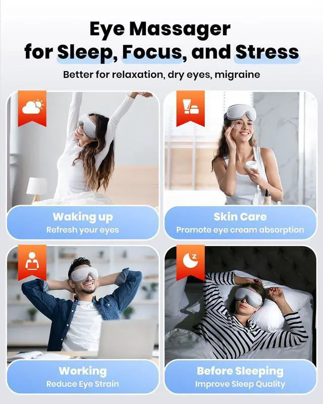 1. The eye massage will produce normal noise <42dB during use. Light rain (about 30 dB) and Library (about 40 dB)