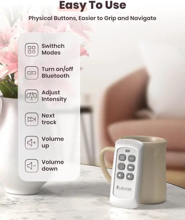 This remote control with a wide range of control that you can control your eye massager mask at a far distance of more than 10ft from a different angle.