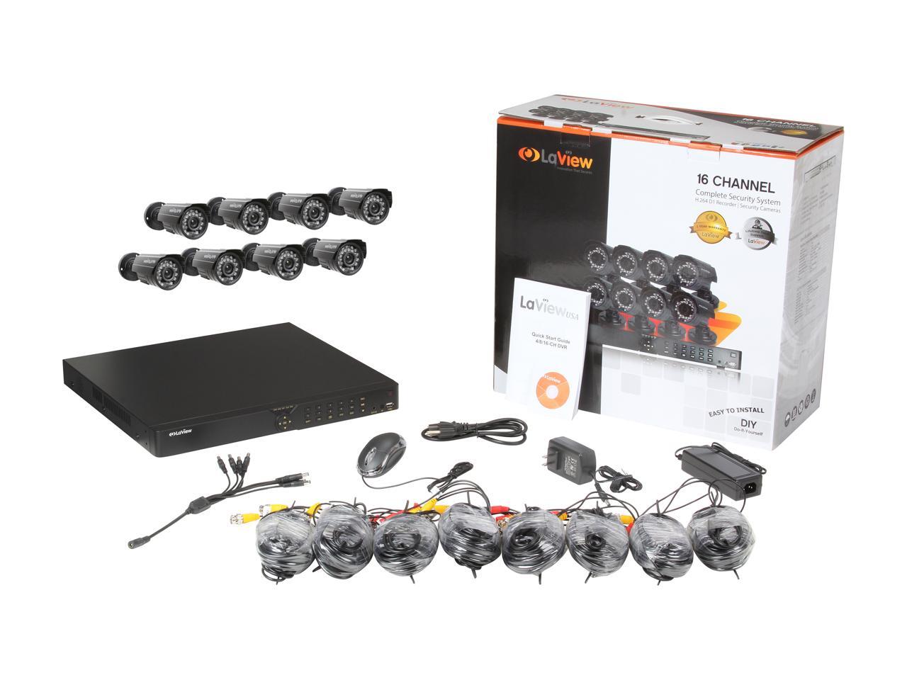 LaView LV-KD3468B Complete 16 CH HDMI Security DVR System w/ Easy DIY Eight 520TVL Infrared Surveillance Cameras (No HDD)